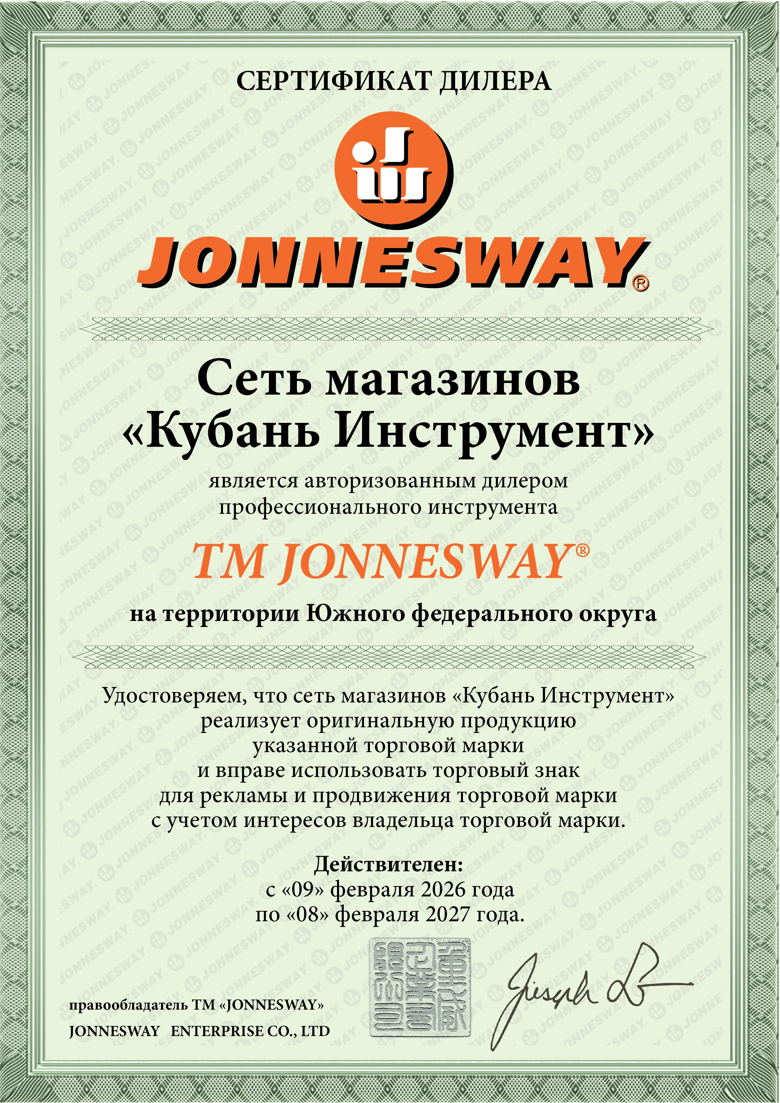 Jonnesway – профессиональный ручной инструмент из Тайваня. Производится в соответствии с общепринятыми стандартами ANSI, DIN, ГОСТ. Качество и долговечность подтверждаются пожизненной гарантией, которая дается практически на всю продукцию. Концепция One Step Shopping подразумевает широкий ассортимент, из которого мастер может выбрать все необходимое для работы у одного производителя.