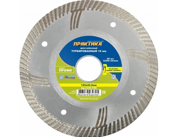 Диск алмазный турбированный Практика "Профи" 125*22мм сегмент 10мм 030-795