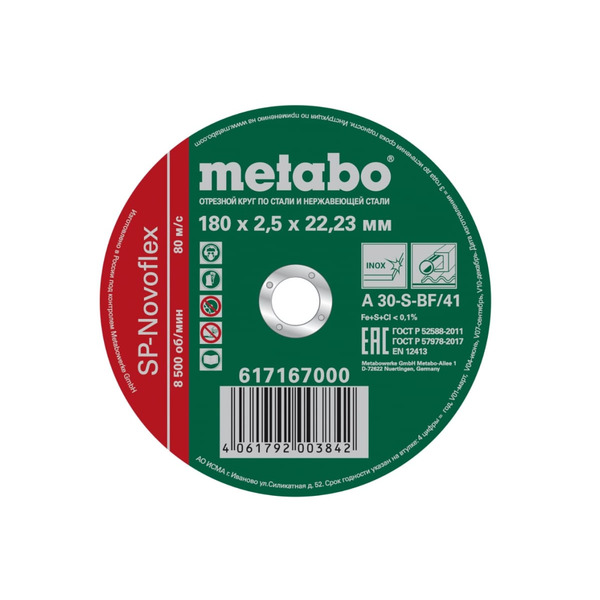 Круг отрезной по нержавеющей стали Metabo SP-Novorapid 230*1,9*22,23мм 617168000