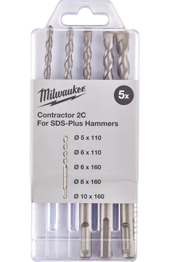 Набор буров Milwaukee Contractor sds-plus 5шт 5/6*110мм, 6/8/10*160мм 4932471242