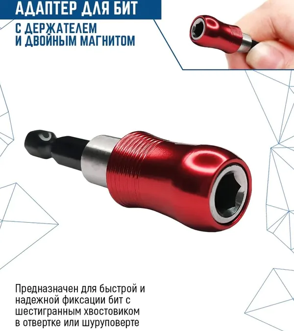 Адаптер для бит Vertextools 1/4 с держателем и двойным магнитом АД-1/4