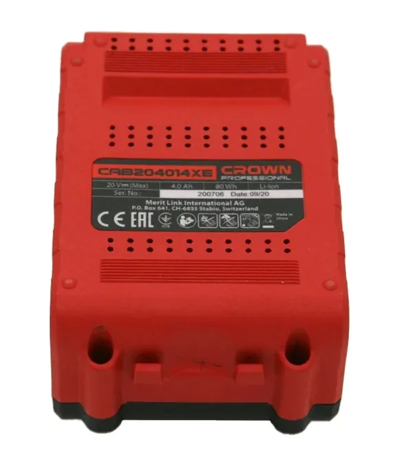 - • аккумулятор CROWN CAB204014XE CB 20В, 4.0Ач, ячейки 18650.