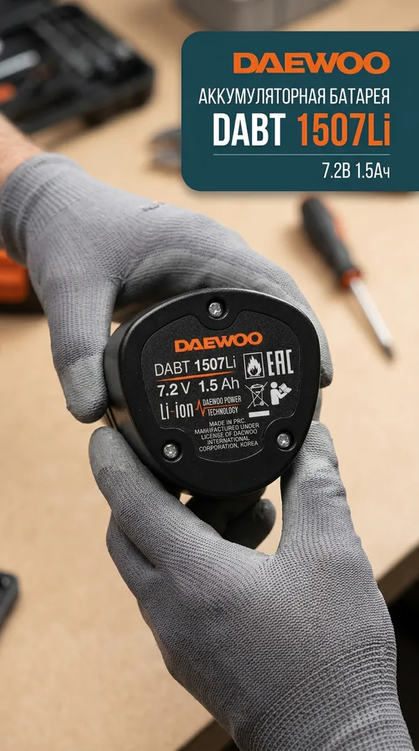Напряжение аккумулятора, ВЕмкость аккумулятора, А*ч1.5Тип аккумулятораУстройство аккумулятораМатериал изготовленияФасовка, шт1Защита от перегреваДаИндикатор заряда батареиНетКласс товараПроизводительDaewooРодина брендаКореяСтрана изготовительКитайUSB-портНетГарантия, месРекомендовано ознакомиться на сайте производителяУсловия гарантииНа данный вид товаровМодельDABT 1507LiГабариты товара (ДхШхВ), мм120*60*60Масса нетто, кг0.153Габариты упаковки (ДхШхВ), мм130*70*70Вес брутто, кг0.255Комплектация