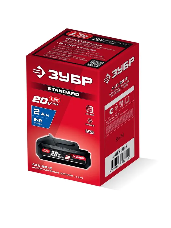 - ЗУБР 20 В, 2.0 А·ч, аккумулятор LMS (АКБ-20-2)
