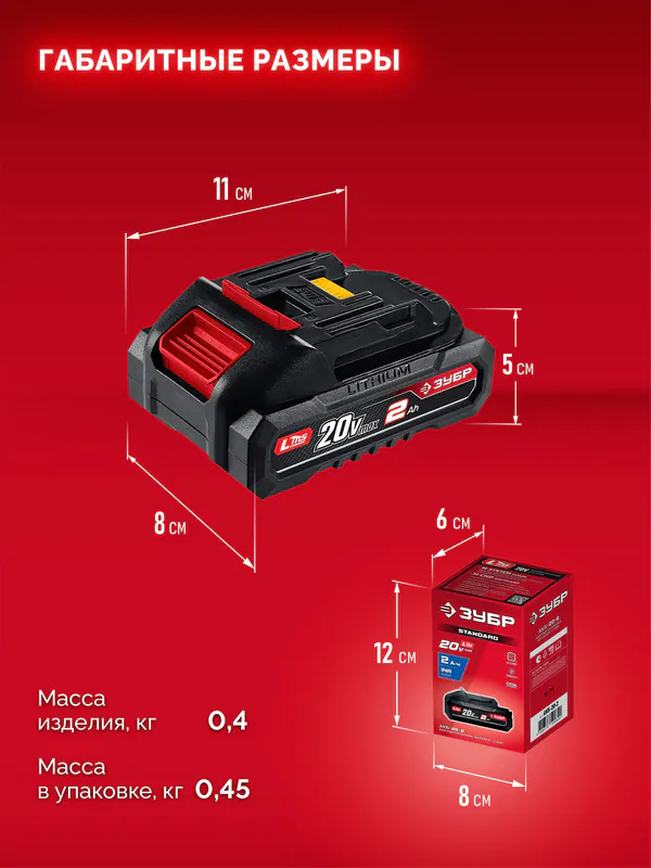 Аккумулятор Зубр LMS 20В, 2.0А·ч АКБ-20-2