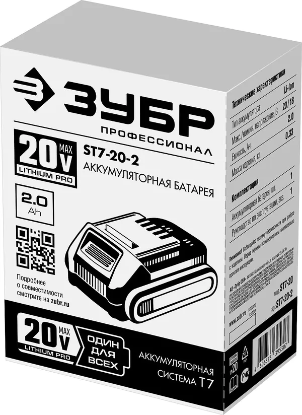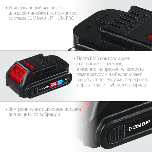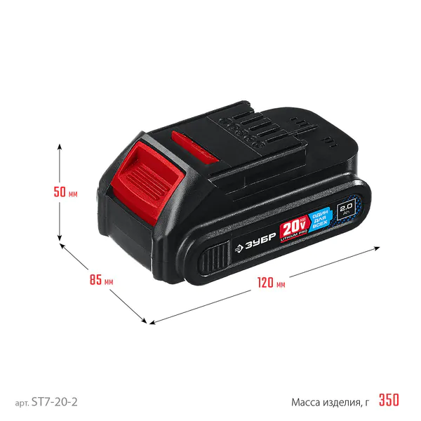- ЗУБР T7, 20 В, 2.0 А·ч, аккумуляторная батарея, Профессионал (ST7-20-2)