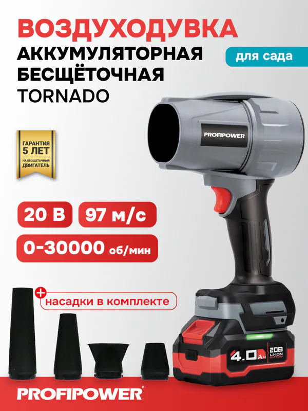 Аккумуляторная бесщеточная воздуходувка PROFIPOWER "Tornado" MKBUB-20V E0225