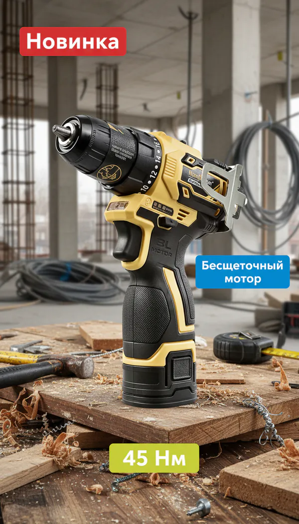 Аккумуляторная дрель б/щ Hanskonner PLATINUM, 14, 4В, 45Нм, 2х2.0Ач, 10мм, сумка-кейсHCD1645BLC