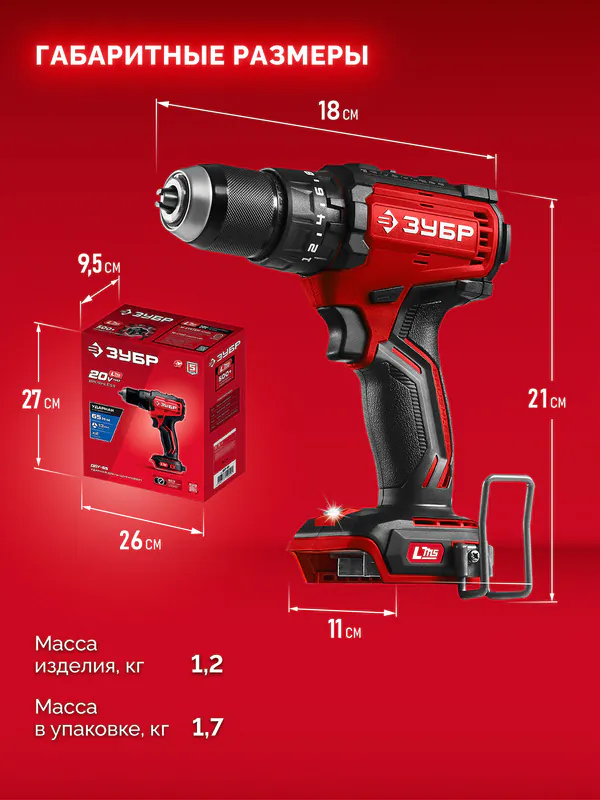 - ЗУБР 20 В, 65 Н·м, без АКБ (LMS), бесщеточная ударная дрель-шуруповерт (ДБУ-65)