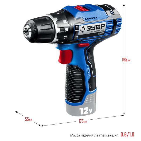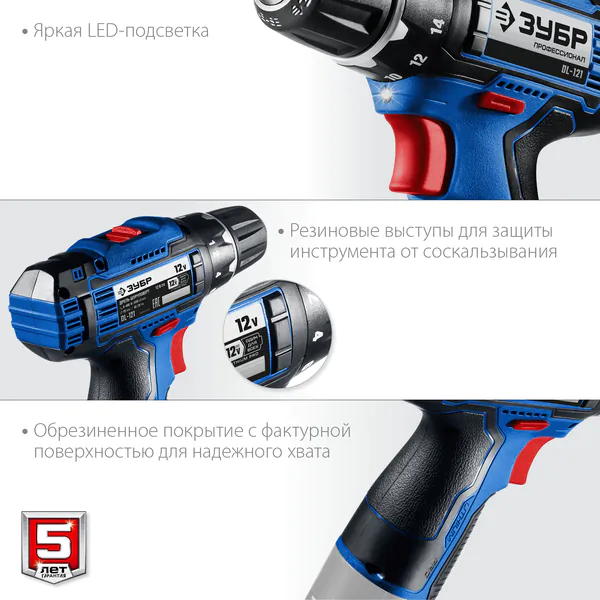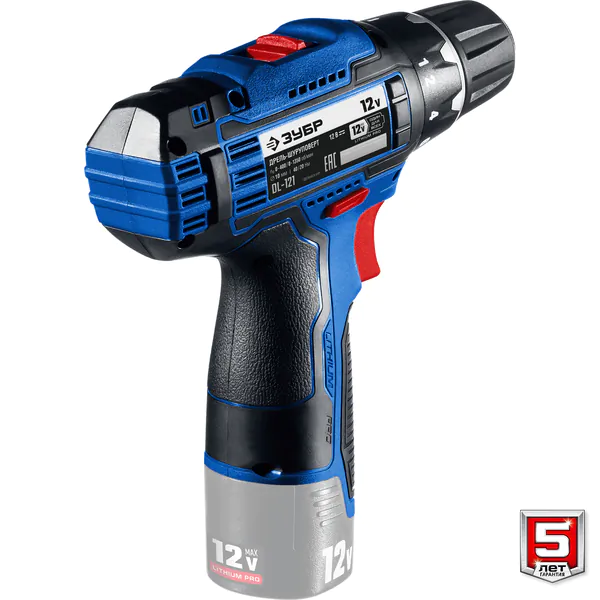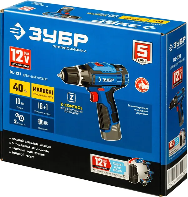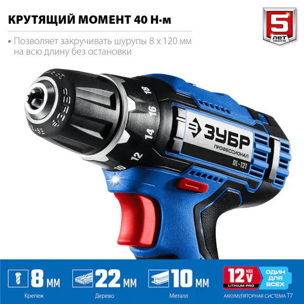 - ЗУБР 12 В, 40 Н·м, без АКБ (тип Т7), дрель-шуруповерт, Профессионал (DL-121)
