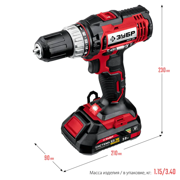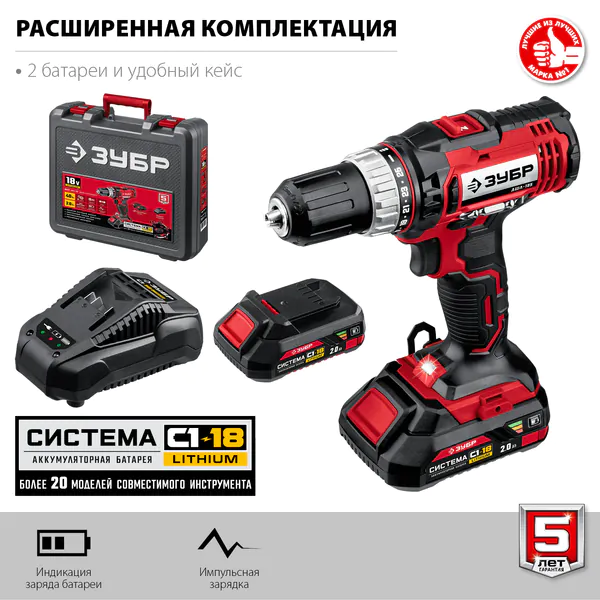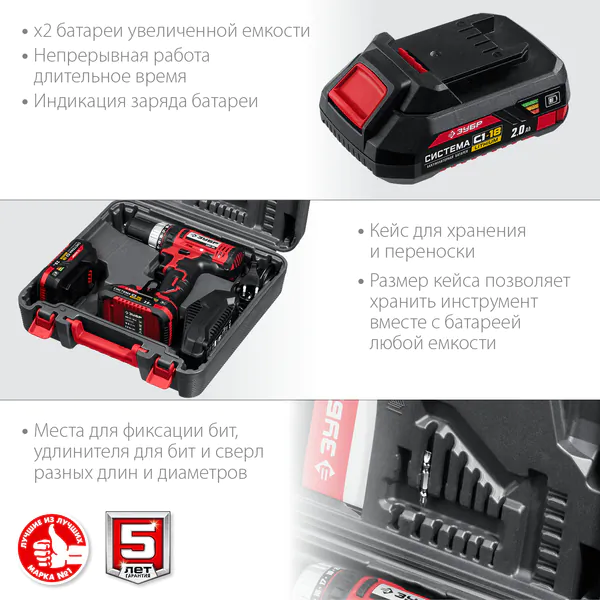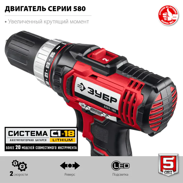 Аккумуляторная дрель-шуруповерт Зубр ДШЛ-185-22