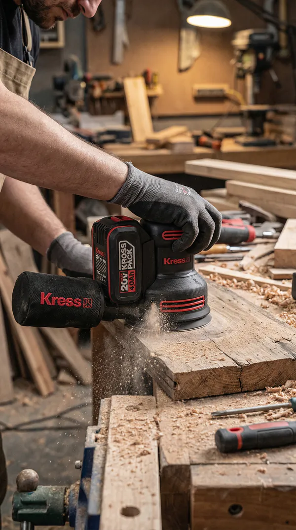 - • аккумуляторная эксцентриковая шлифовальная машина KRESS KUD20.9 без АКБ и ЗУ;