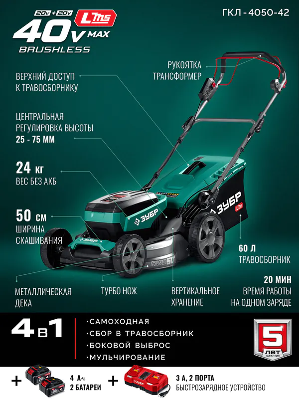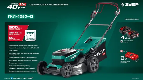 Аккумуляторная газонокосилка ЗУБР ГКЛ-4050-42