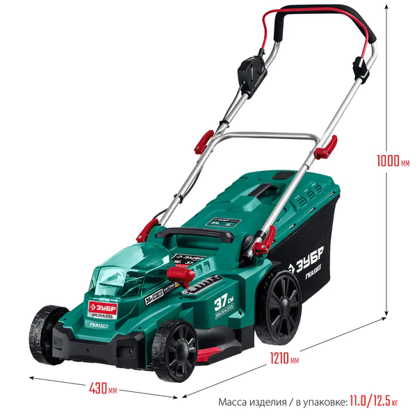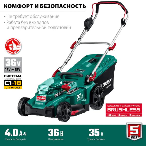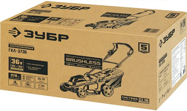 - ЗУБР С1-18, 36 В, 37 см, без АКБ, бесщеточная газонокосилка (ГКЛ-3736)