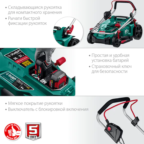 Аккумуляторная газонокосилка Зубр С1-18 36В 37см без АКБ ГКЛ-3736