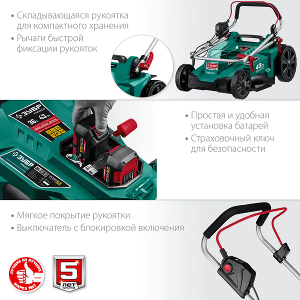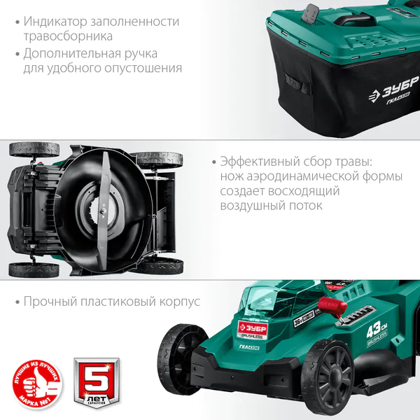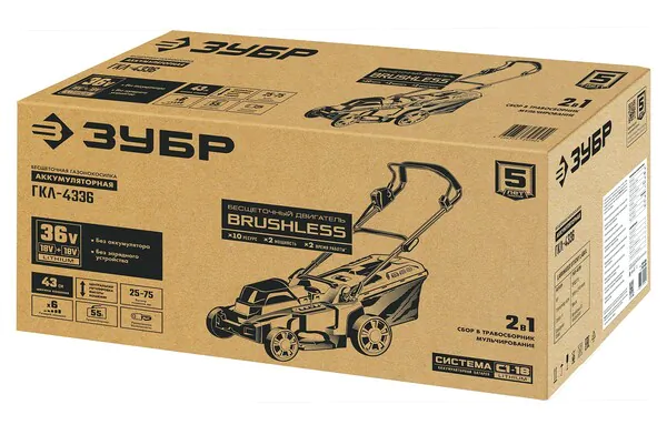 - ЗУБР С1-18, 36 В, 43 см, без АКБ, бесщеточная газонокосилка (ГКЛ-4336)