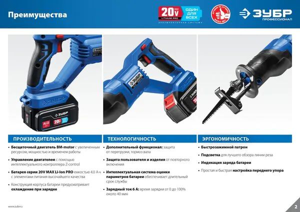 - ЗУБР Т7, 20 В, 180 мм, без АКБ, бесщеточная пила сабельная, Профессионал (SPB-180)