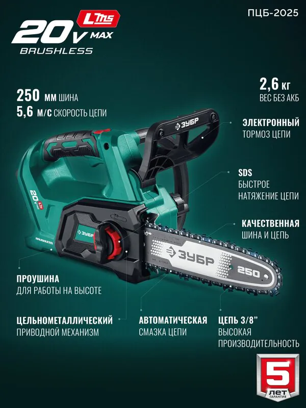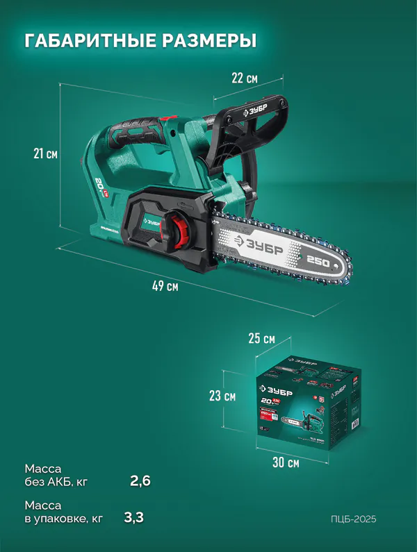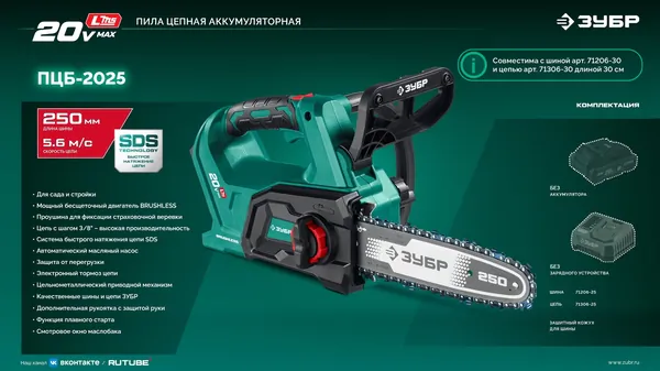 Аккумуляторная пила цепная ЗУБР ПЦБ-2025
