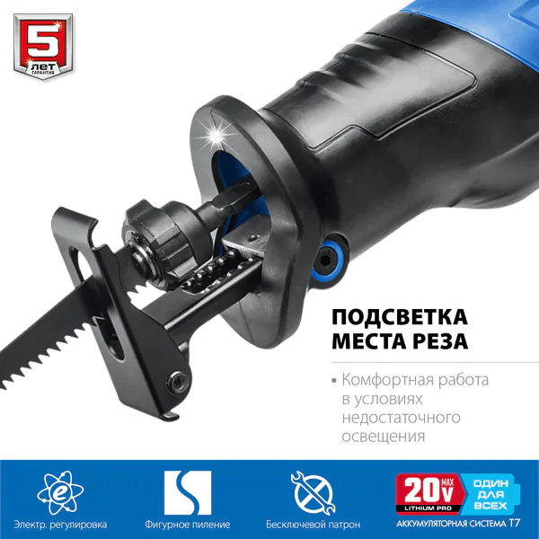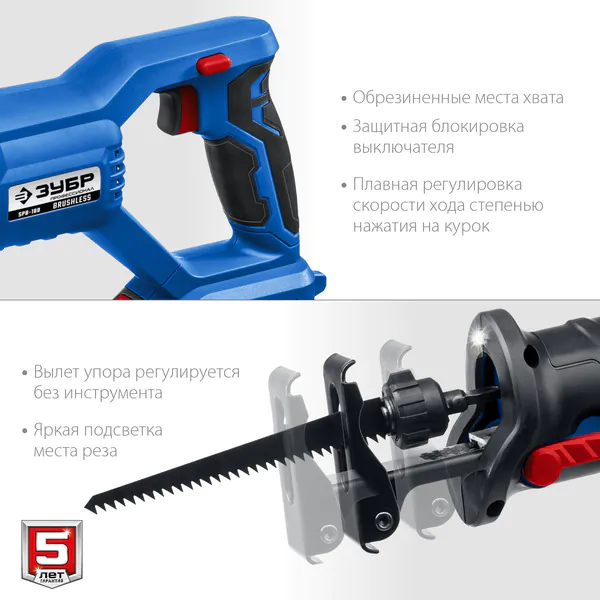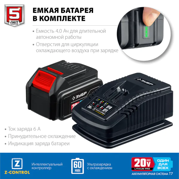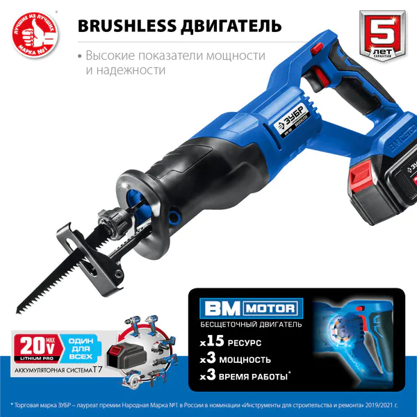 Аккумуляторная сабельная пила Зубр Профессионал Т7 20В 180мм 1 АКБ 4 А·ч , SPB-180-41