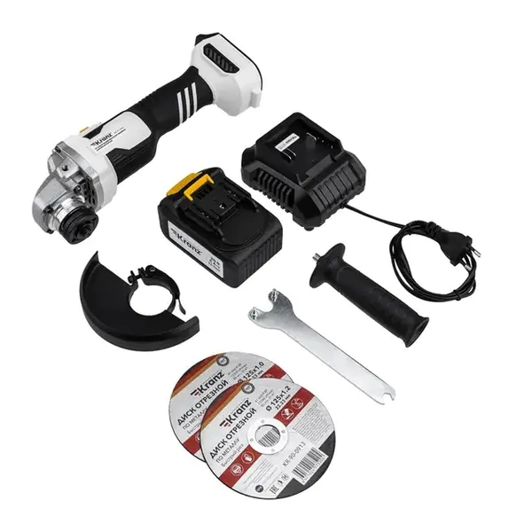 - • аккумуляторная угловая шлифовальная машина KRANZ 1х4Ач KR-PT-250;