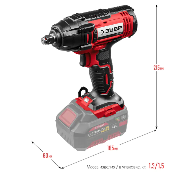 - ЗУБР С1-18, 18 В, 250 Н·м, без АКБ, гайковерт ударный (ГУЛ-255)