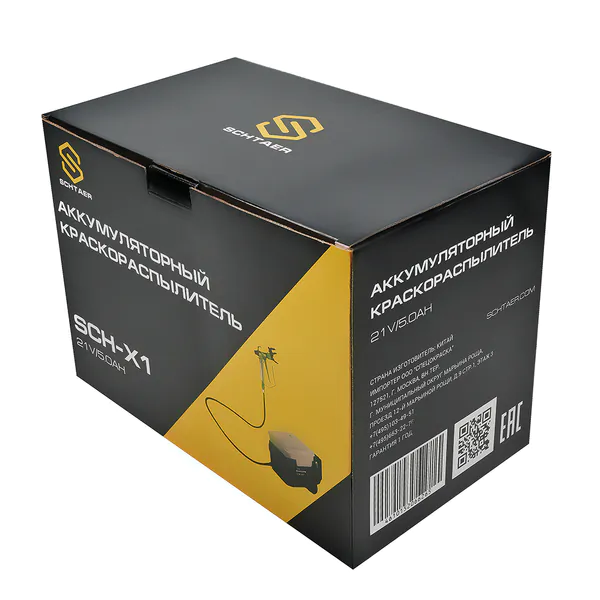 - Аккумуляторный краскораспылитель SCHTAER SCH-X1 (21 В, 500 Вт, 1,1 л/мин, 170 бар)
