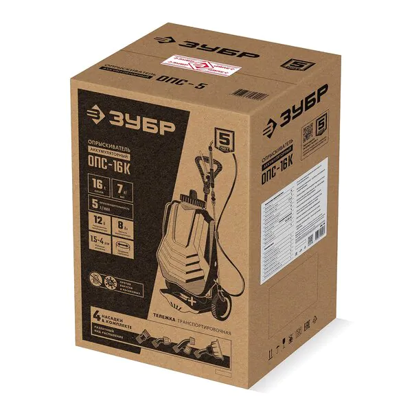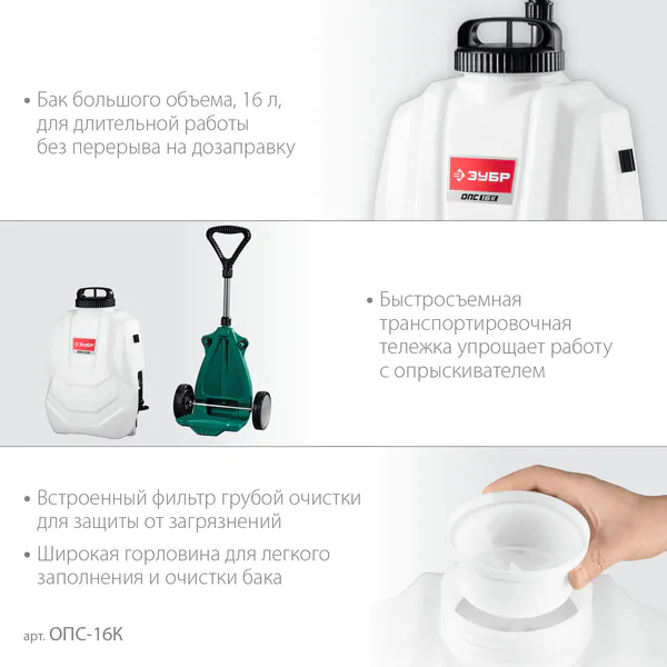 - ЗУБР 16 л, колеса, аккумуляторный опрыскиватель (ОПС-16К)