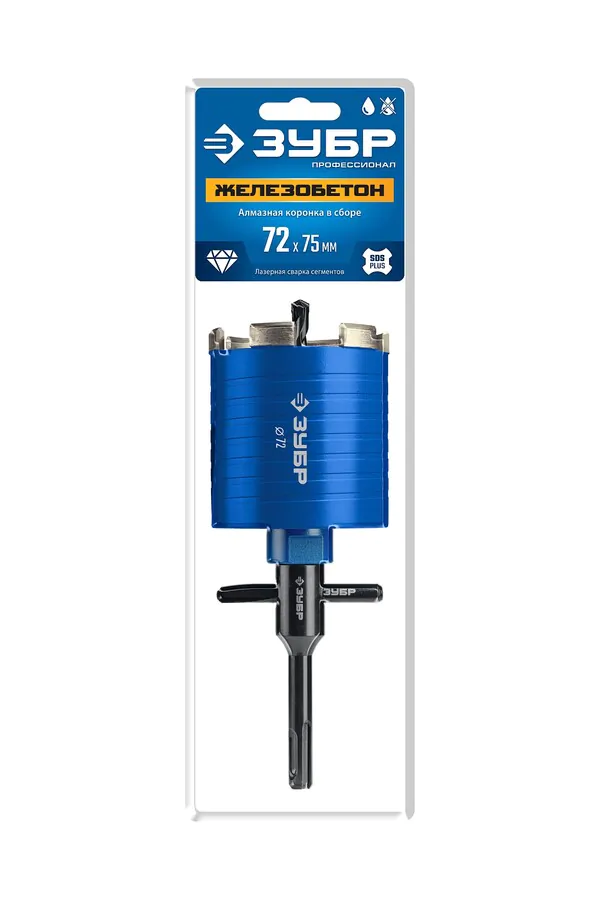 - ЗУБР АСК d 72 мм (М16, рабочая глубина 75 мм, лазерная сварка), алмазная сегментная коронка для подрозетников, Профессионал (29875-72)
