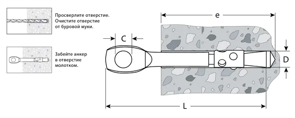 - ЗУБР 6 х 60 мм, 200 шт, потолочный анкер с кольцом (302852-06-060)