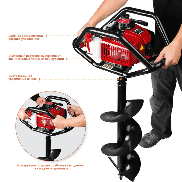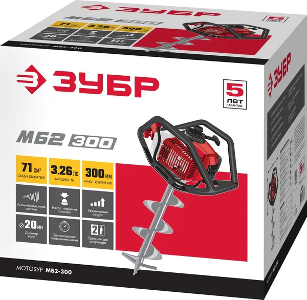 - ЗУБР d 60 - 300 мм, 71 см3, 2 оператора, мотобур (бензобур) (МБ2-300)