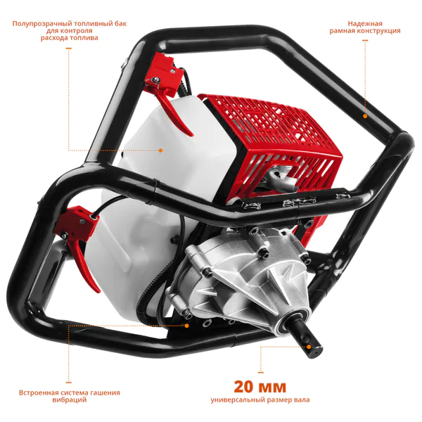 Max диаметр бура, мм300Число оборотов, об/минМощность двигателя, л.с.3.26Объем двигателя, куб.см71Диаметр соединенияРеверсШнек в комплектеНетЁмкость топливного бака, л1.2Гарантия, мес60Условия гарантии60 месяцевСистема гашения вибрацииДаРасход топлива, л/ч1.2УпаковкаMax мощность, Вт2400ПраймерДаТип двигателяГабариты товара (ДхШхВ), мм440*390*420Масса нетто, кг13.275Комплектация