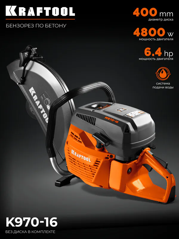 - KRAFTOOL 4800 Вт, 400 мм, без диска, бензорез по бетону (бетонорез) (K970-16)