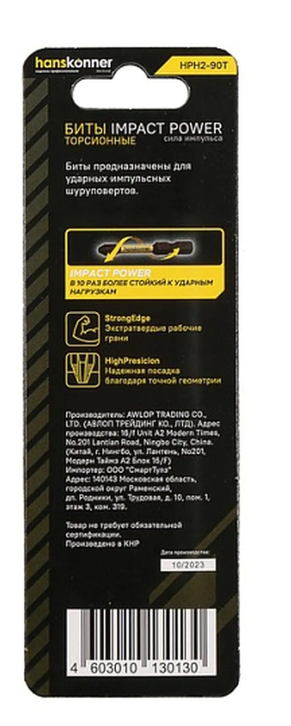 - • бита Hanskonner PH2x90 мм, ImpactPower, торсионная, 1 шт, HPH2-90T.