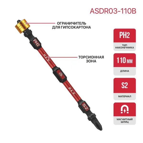 - • бита ударная двусторонняя магнитная P.I.T. IMPACT PH2-PH2*110 мм ASDR03-110B.