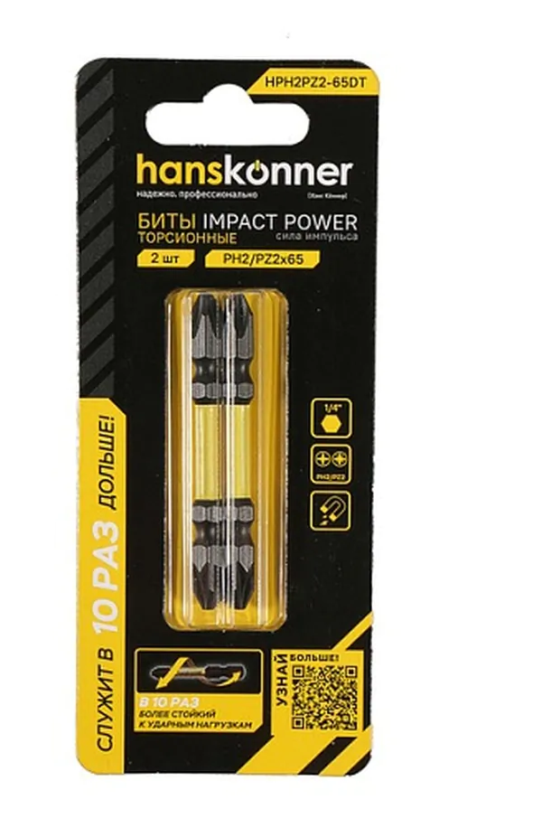 - • биты Hanskonner PH2PZ2x65 мм, ImpactPower, двуст., торсионные, 2 шт, HPH2PZ2-65DT.