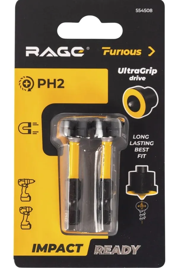 Биты торсионные RAGE Furious S2 PH2 50мм 2шт для гипсокартона и ГВЛ 554508
