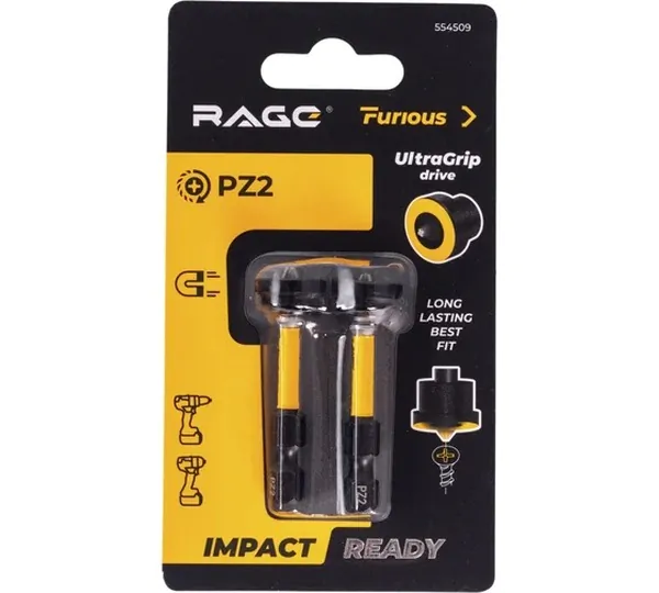 Биты торсионные RAGE Furious S2 PZ2 50мм 2шт для гипсокартона и ГВЛ 554509