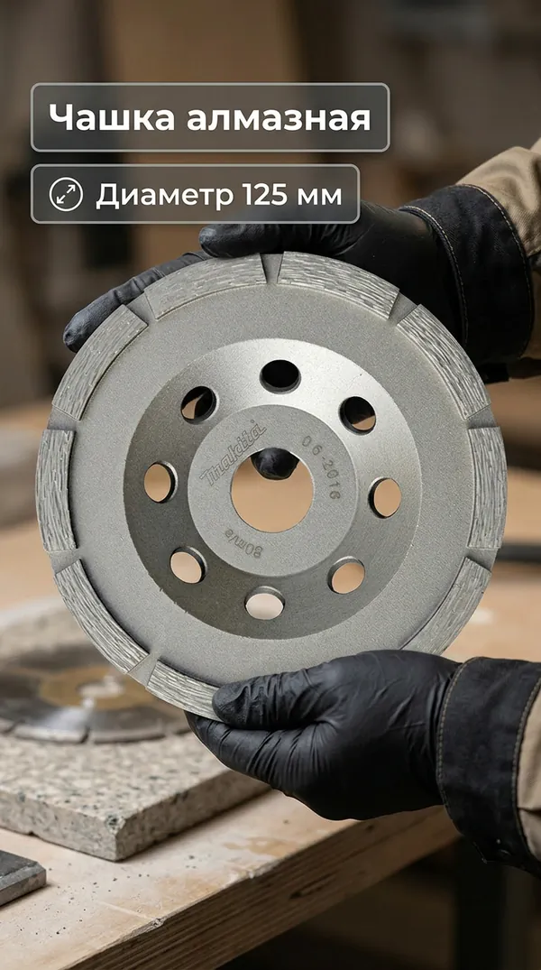 - • чашка алмазная однорядная Makita "Standard" 125*22,23*8*5 мм (грубая шлиф.) D-60682.