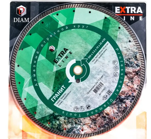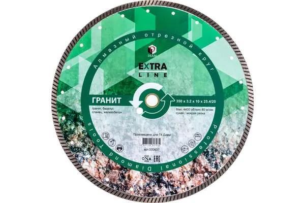 - • диск алмазный Diam Extra Line Гранит Turbo 350*3,5*10*25,4/20 (гранит, базальт, сланец, сухой рез) 000637.