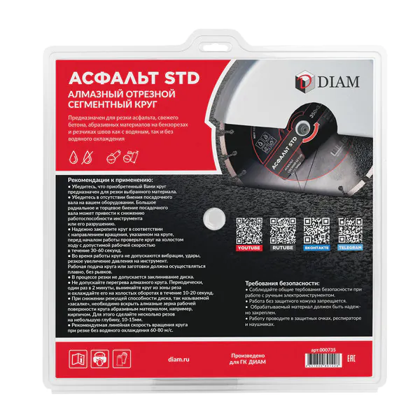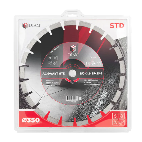 Диск алмазный Diam STD Асфальт 350*3,2*15*25,4 (асфальт, свежий бетон, абразивы) 000735
