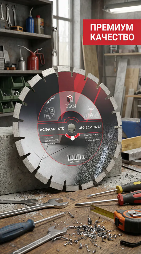 - • диск алмазный Diam STD Асфальт 350*3,2*15*25,4 (асфальт, свежий бетон, абразивы) 000735.