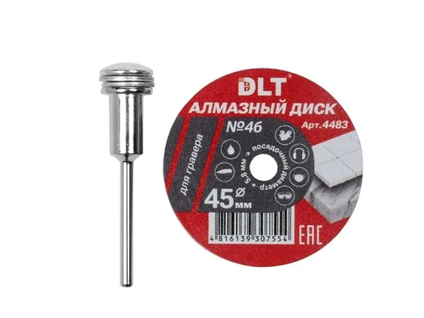 - • диск алмазный DLT № 46, 45 мм*0,6 мм, посадочный d-5,8 мм 4483.
