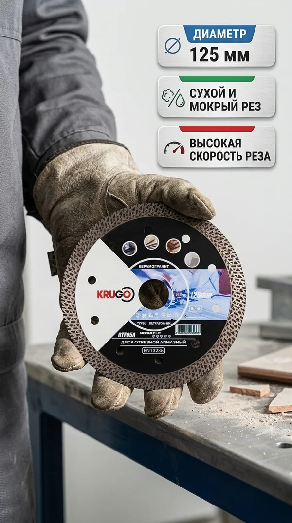 - • диск алмазный Krugo 125*1.4*22.23*10 мм (по твердой керамике) RTF05A.