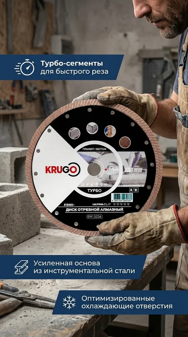 - • диск алмазный Krugo 230*2.6*22.23*10 мм (универсальный) RTB09A+.
