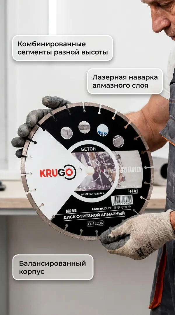 - • диск алмазный Krugo 350*25.4*40*3.2*10 мм (по бетону) LCB14A.