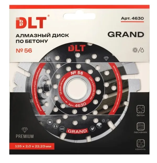- • диск алмазный по бетону DLT №56 Grand 125*2,5*22,23 мм 4630.