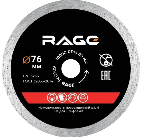 - • диск алмазный по керамограниту RAGE by VIRA Turbo 76 мм 605076.