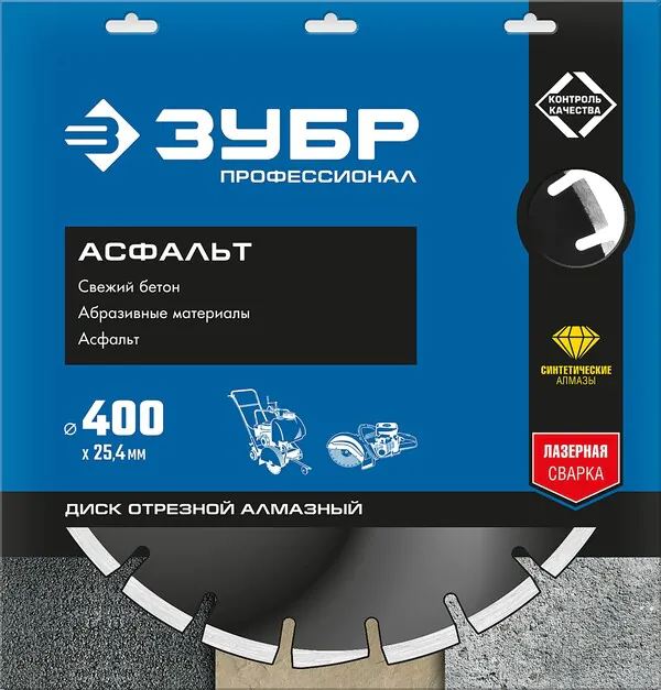 - ЗУБР Асфальт, 400 мм, (25.4/20 мм, 10 х 3.4 мм), сегментный алмазный диск, Профессионал (36667-400) 36667-400_z01