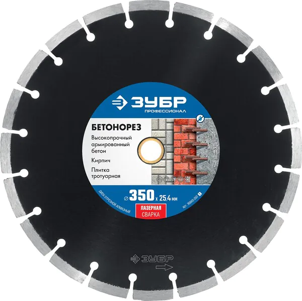 - ЗУБР Бетонорез, 350 мм, (25.4/20 мм, 10 х 3.2 мм), сегментный алмазный диск, Профессионал (36665-350) 36665-350_z01