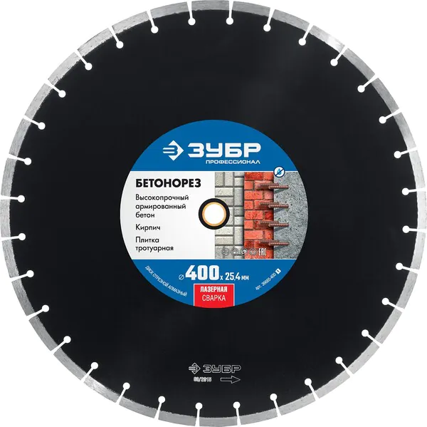 - ЗУБР Бетонорез, 400 мм, (25.4/20 мм, 10 х 3.4 мм), сегментный алмазный диск, Профессионал (36665-400) 36665-400_z01